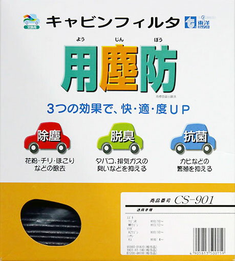[ジムニーJB23/33/43用] カーエアコン用フィルター・用塵防(ようじんぼう) 価格: 3,358円 レビュー評価: 3.67 レビュー数:3 スズキジムニー JB23/33/43用※その他、AZオフロード,エブリイ,ラパン等にも対応。詳しくは下の表でご確認下さい。3つの効果で快適ドライブ♪特殊活性炭パワーでイヤな臭いをカット!★防塵効果チリ・ホコリなどの除去はもちろん、花粉(10?100ミクロン)やタバコの煙(0.01?0.5ミクロン)などの細かい粒子も取り除きます。★脱臭効果タバコ・ペット・汗などの臭いに含まれる低級脂肪酸やアンモニアの除去。また排気ガスなどの炭化水素系の臭いの除去などに効果があります。★抗菌効果抗菌剤入りの特殊不織布を使用し、カビなどの繁殖を抑えカビ臭を防ぎ清潔な車内空間を保ちます。キャビンフィルタは交換部品です Supported by 楽天ウェブサービス |